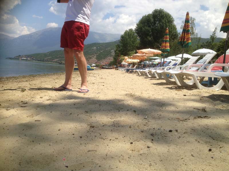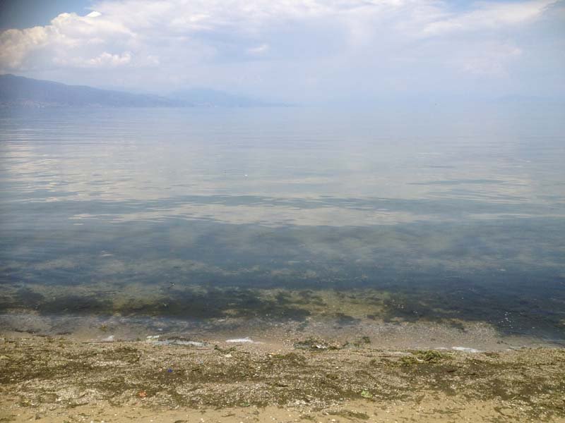 We soon drove off toward Ohri (Ohrid) to see the 9th century Saint Naum Monastery. The journey was hot, humid and not so squeezy, one side with Anisa and other with Bashkim in the back seat, Rohan and Alek in front. On route we stopped at Enver Hoxha‘s private communist party lakeside resort – on the Albanian side of Lake Ohri. The lake was cool and refreshing. The lake beach was full of litter.