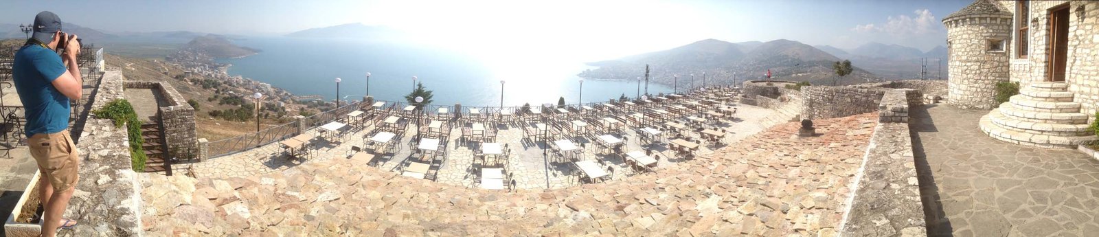 From there we headed back toward Sarandë to visit the Ottoman built Ali Pasha Castle – now a café that hosted a million dollar full 360 degree view of Sarandë. A spectacular view on a spectacularly clear day. We could see the dwellings of the 40 thousand inhabitants around us.