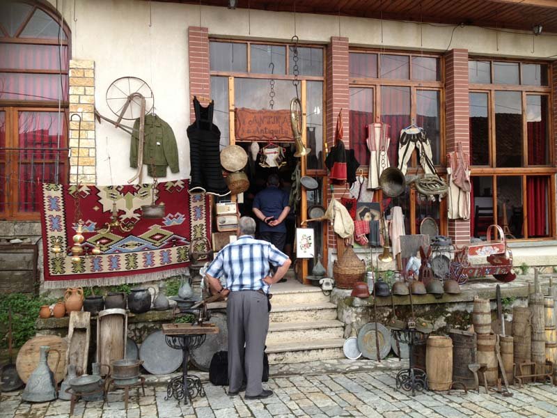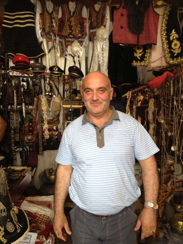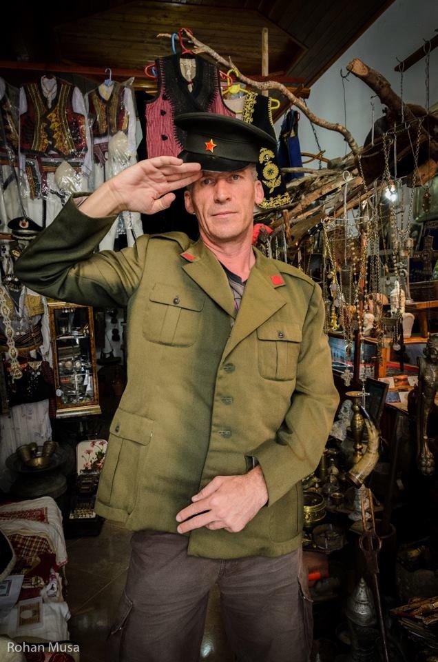 The winding roads led us near the main center of Krujë Castle. Nick parked in a construction site nearby. Walking towards the castle from car park we past a bazaar where I found a retro shop filled communist period items. I just wanted to buy everything in the place. I eventually purchased an Army jacket (for Jeff) and Russian winter hat (for Zenep). Fatos the owner and I bargained down to $50AU.