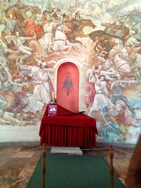 Left the items with Fatos and headed for Skenderbeg’s castle along a newly built pathway, amazing to see. There is a newly built section atop the old original castle – it houses frescoes and statues. An amazing (strategic) view of the entire city.